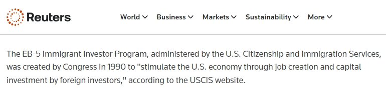 美國公民和移民服務局網站顯示,EB-5簽證是一種面向外國投資者的就業移民簽證,由美國國會於1990年制定,旨在“通過創造就業機會和利用外國投資者的資本投資來刺激美國經濟”。