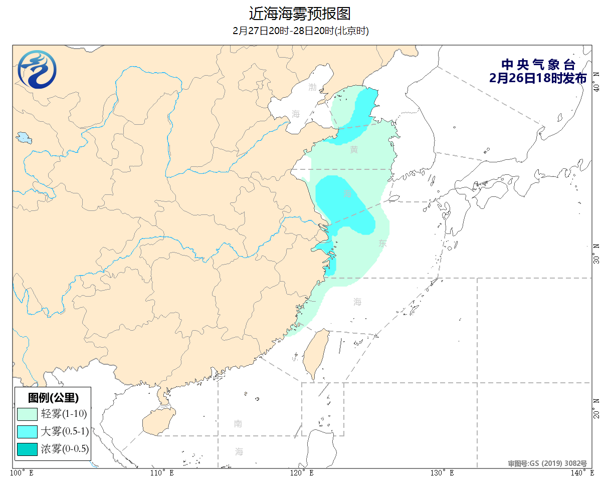 27日20時至28日20時,東海大部海域將有4~6級、陣風7級的西南風轉東南風,巴士海峽、南海東北部和南部海域將有4~6級、陣風7級的偏東到東北風。黃海大部海域、東海中西部海域、長江口、杭州灣附近海域、舟山羣島附近海域、遼東半島東部沿岸、山東半島沿岸、江蘇沿岸、浙江沿岸、福建中北部沿岸將有輕霧,能見度不足10公里,其中黃海北部和南部以及東海西北部的部分海域將有大霧或濃霧,能見度不足1公里。