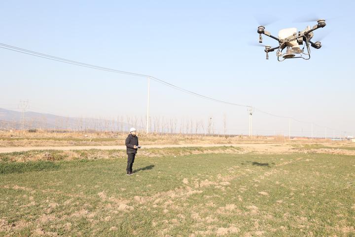在位於江蘇連雲港的雲台農場,高效節能、操作便捷的植保無人機騰空而起,成為1.8萬畝小麥春季管護的得力助手。通過無人機作業每1000畝地僅需一名工作人員,兩天便可完成農場全部小麥地的施肥。