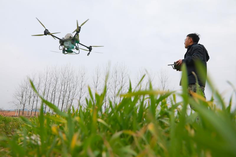 今年,當地種糧户們採用了許多農業新科技,多光譜無人機就是其中之一。這種設備可以通過光譜智能識別技術確定不同地塊的小麥長勢、計算出不同地塊對肥的需求量變量施肥,進而為農户節約成本。