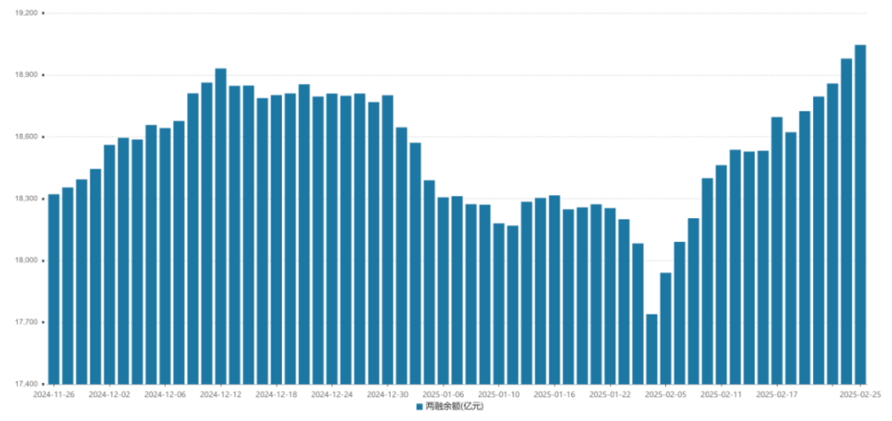 截至今年2月25日,A股市場兩融餘額則已站上1.9萬億元關口,且已連續5個交易日增加。其中,作為市場多方主力之一的融資餘額規模創下近2個月新高,達到18931.61億元。在兩融餘額連升期間,超七成行業融資餘額出現增長。