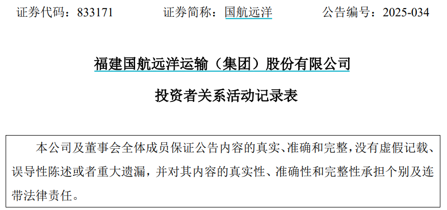 【環球網財經綜合報道】2月27日,北交所上市公司國航遠洋(833171.BJ)發佈了《投資者關係活動記錄表》,披露公司參加了國海證券2025年春季策略會,並接待了國海證券、樸遠資產、中信證券的調研,公司董事會秘書何志強參與並解答投資機構代表提問。
