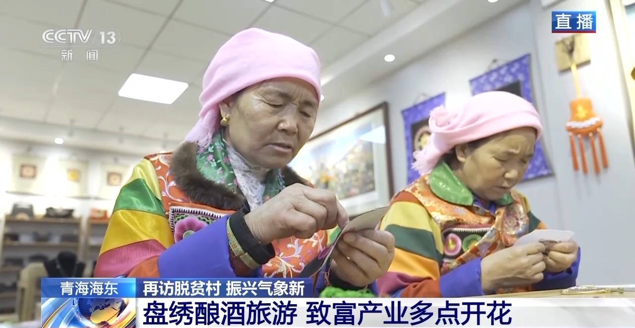 不僅是光伏發電,近幾年,村裏因地制宜發展起土族盤繡、古法釀酒、鄉村旅遊等多個致富產業,還通過電商直播帶貨平台,推廣村裏自產的青稞酒、中藥材等農特產品,讓村民實現就地就近就業的同時,也讓產品的銷路越走越遠。