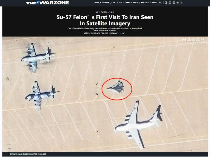 衞星圖片顯示蘇-57在伊朗機場停留。圖/美國“戰區”網站