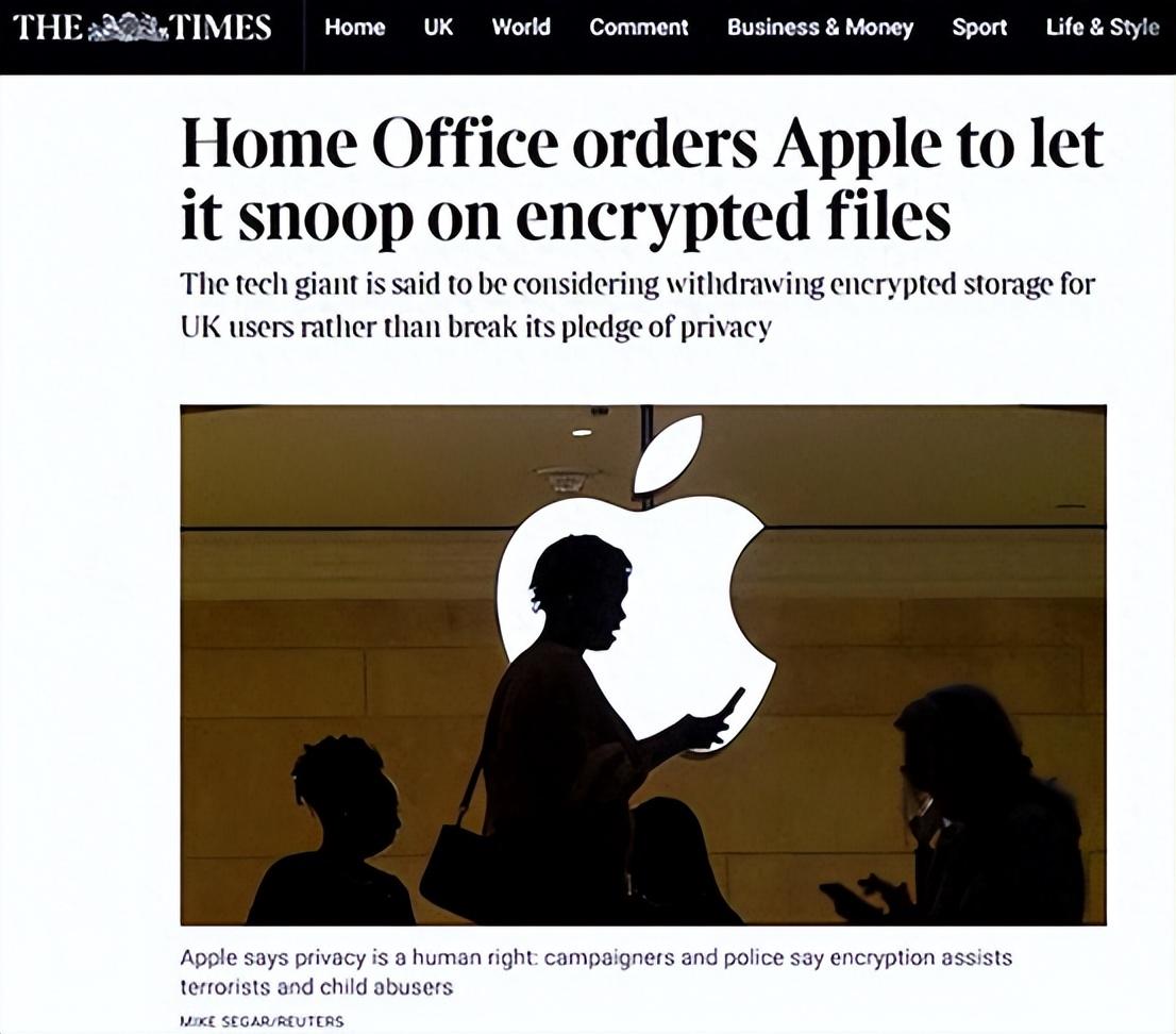 美國《華盛頓郵報》2月7日援引消息人士的説法報道稱,英國政府已經秘密下令,要求美國蘋果公司“開後門”。這項未公開的命令,並非僅僅要求蘋果協助英國執法部門破解某幾個特定用户的賬户,而是要求允許查看全球所有用户的雲端內容。之後,英國《金融時報》、《泰晤士報》等多家媒體援引英國內政部消息人士的説法,證實了《華盛頓郵報》相關報道。