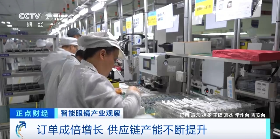 位於江蘇常州的一家電子零部件生產企業,也在開足馬力加緊生產,負責人告訴記者, 目前市場上的智能眼鏡款式多樣,對各類零件的匹配需求也各不相同,而一台智能眼鏡的電子元器件達到上百個,為此企業專門組建了一條柔性產線,實現不同規格零部件的自動化量產。目前,企業智能眼鏡核心器件的出貨量同比增長3倍,未來還將不斷加大生產設備和研發投入,進一步提高生產效能。