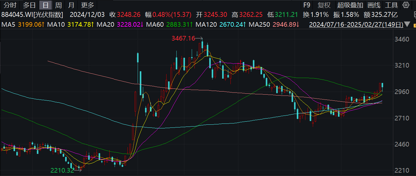 華泰證券近日撰文指出,受益於行業自律較有效與國內需求較好,光伏產業鏈漲價信號頻出,根據InfoLink、SMM等統計,電池片、組件、玻璃價格均有所上漲;2025年2月9日發改委及國家能源局發佈《關於深化新能源上網電價市場化改革 促進新能源高質量發展的通知》,明確2025年6月1日為新老劃斷時點,預計國內今年上半年或存在搶裝,3月將迎來消費旺季窗口期,維持全年裝機270-280GW的預期。