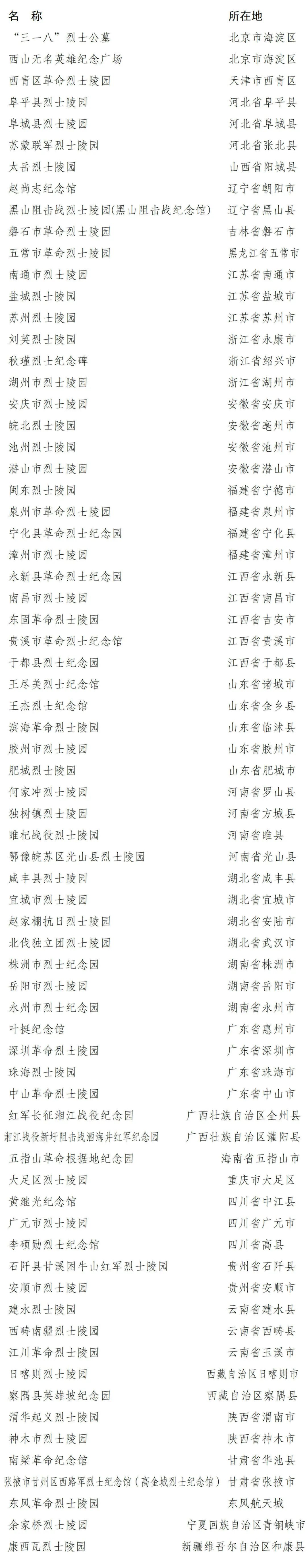 國務院於2025年2月16日批准“三一八”烈士公墓等71處烈士紀念設施為第七批國家級烈士紀念設施,現予以公佈。