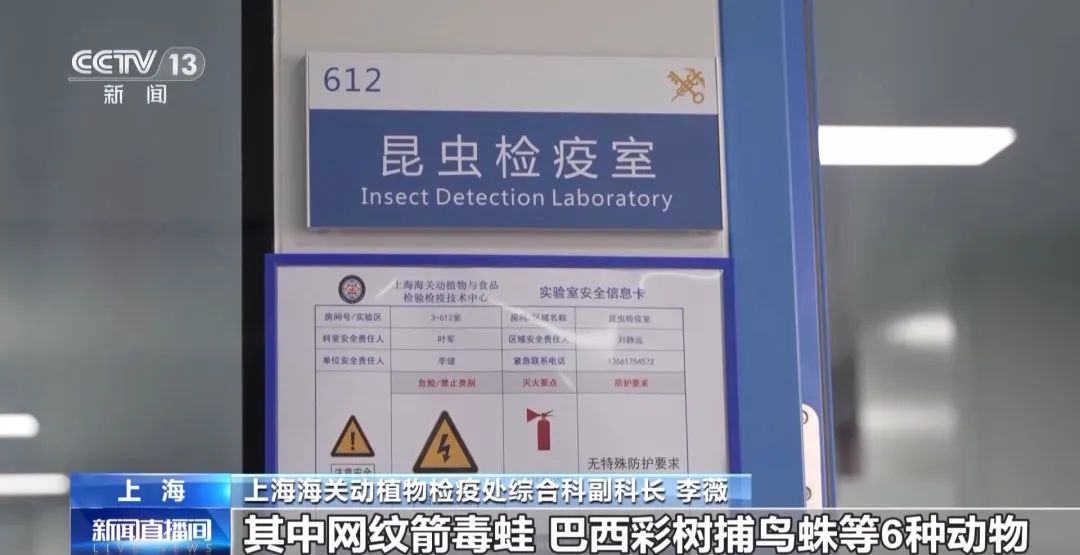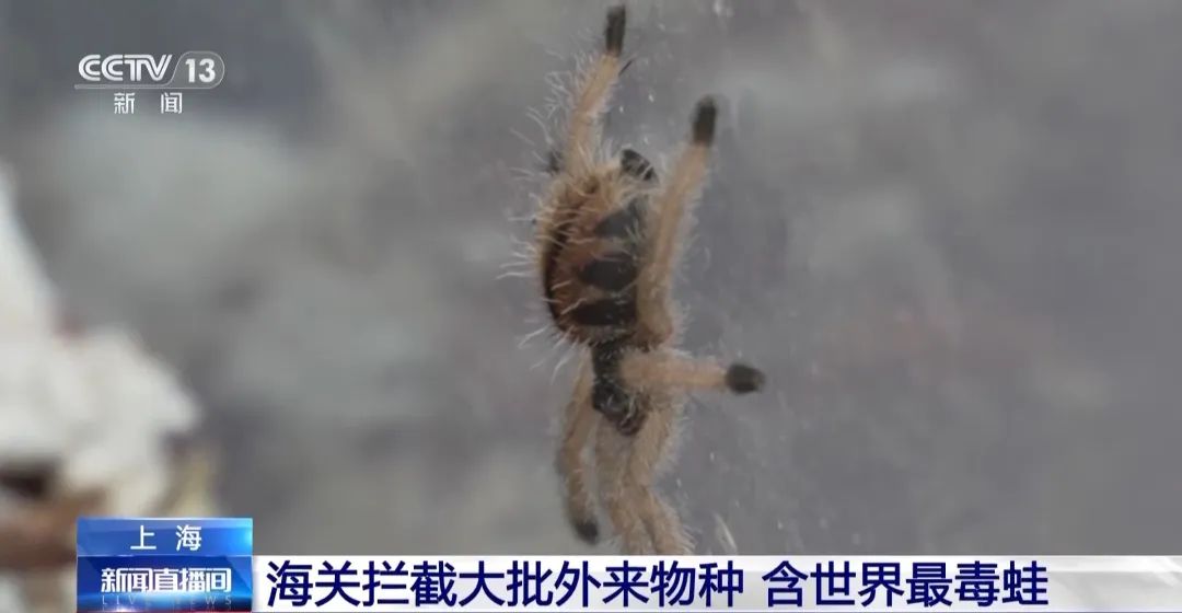 上海海關動植物檢疫處綜合科副科長 李薇 :經上海海關動植物與食品檢驗檢疫技術中心鑑定。其中,網紋箭毒蛙、巴西彩樹捕鳥蛛等6種動物屬外來物種。目前,上海海關已依法對上述截獲活體動物做銷燬處理。