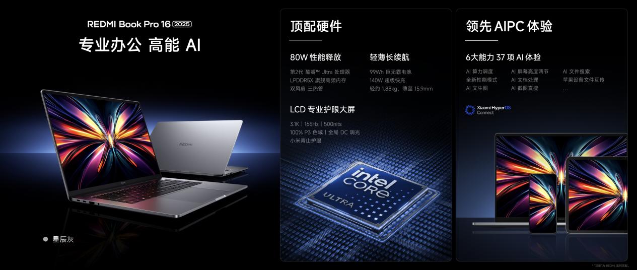 電腦方面,小米推出了首款AI PC產品REDMI Book Pro 2025系列包含16寸和14寸兩個版本。