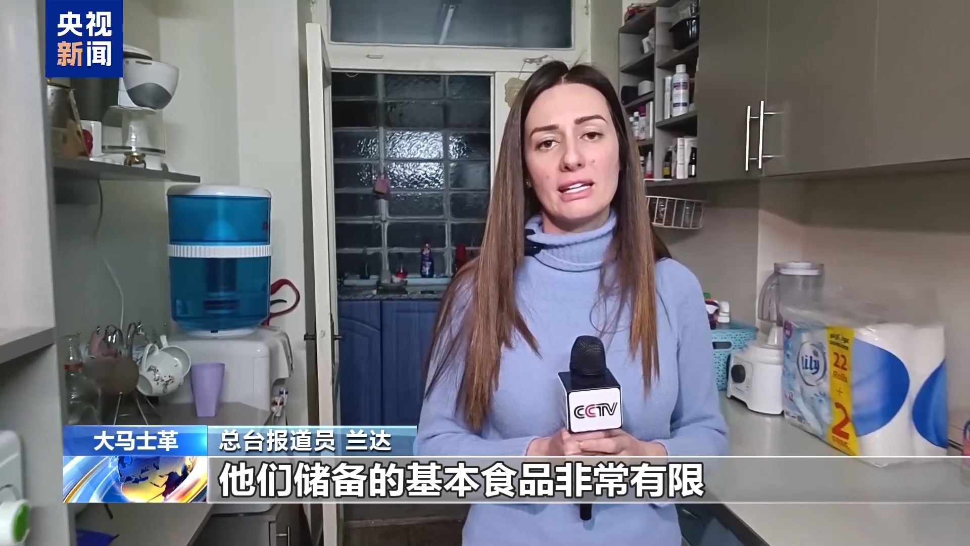 *總枱報道員 蘭達:*這是一個普通敍利亞家庭的廚房,可以看到他們儲備的基本食品非常有限。這正是當前普通敍利亞家庭所面臨的現實,在高昂的生活成本面前,他們的工資收入幾乎微不足道。