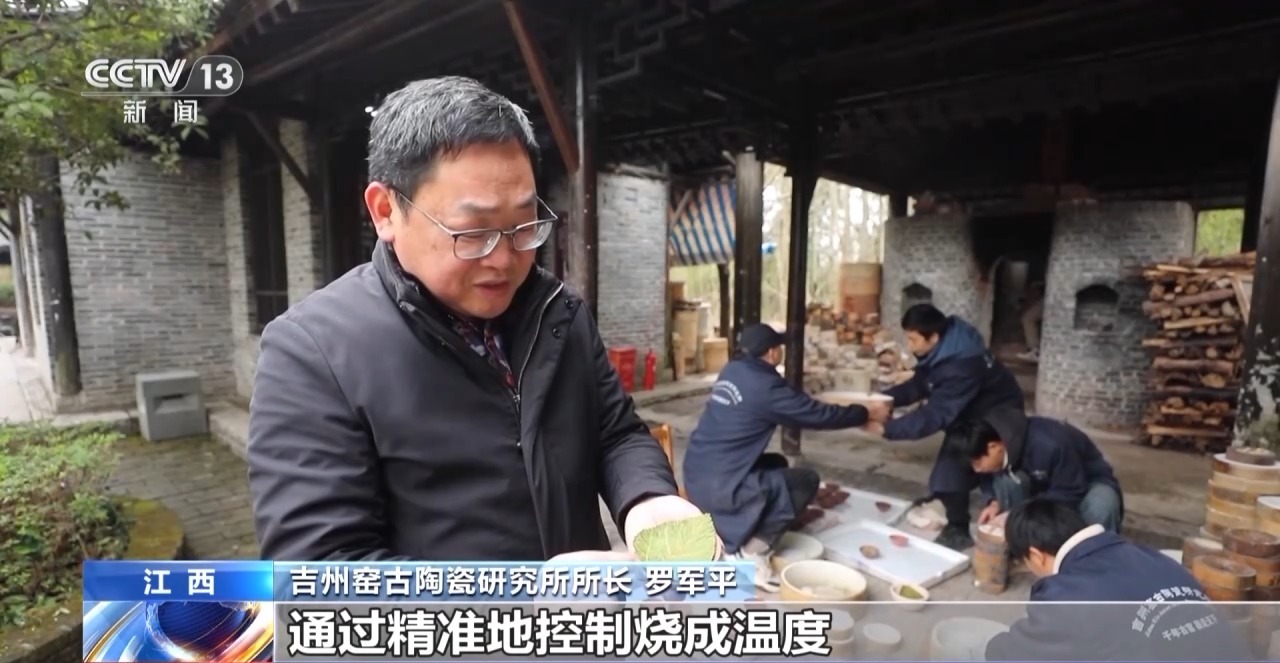*吉州窯古陶瓷研究所所長 羅軍平:*收集了30多種樹葉進行對比復燒,不斷嘗試不同的燒成温度、裝窯方法,連燒窯的木材我們也都試燒了十幾種,最終確定燒的是桑葉。