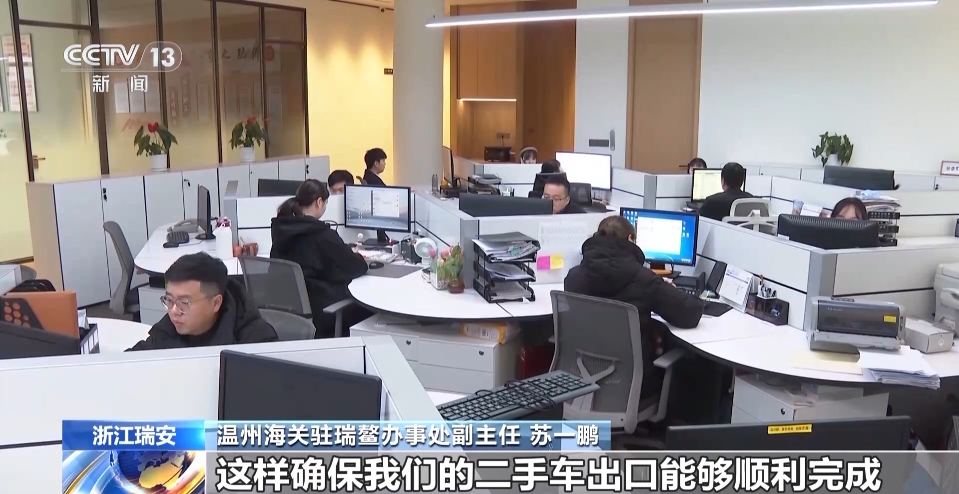 温州海關駐瑞鰲辦事處副主任 蘇一鵬:大力開展提前申報、預約查驗等服務通關便利化的措施,跟口岸海關也建立了緊密的數據共享機制,能夠實現數據即時互動,這樣確保我們的二手車出口能夠順利完成。