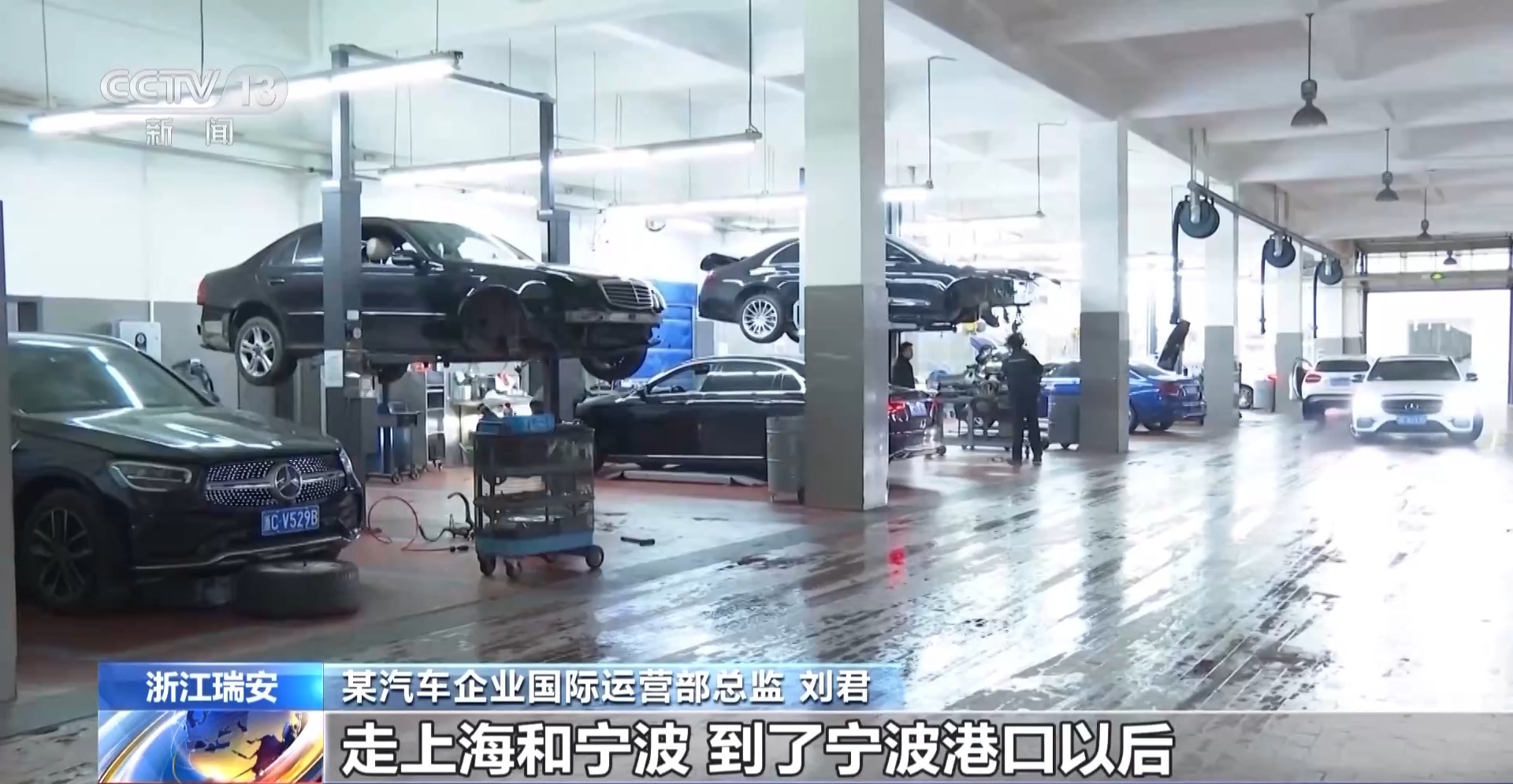 *某汽車企業國際運營部總監 劉君:*我們的車在本地完成出口手續以後,我們會通過海運的模式,走上海和寧波,到了寧波港口以後,最快在當天或者第二天,我們就能完成所有的手續,然後把車送出去。