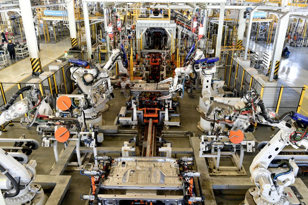 1月9日,在位於日照市五蓮縣的五徵集團汽車焊裝車間,工業機器人在焊裝車身。新華社記者 郭緒雷 攝