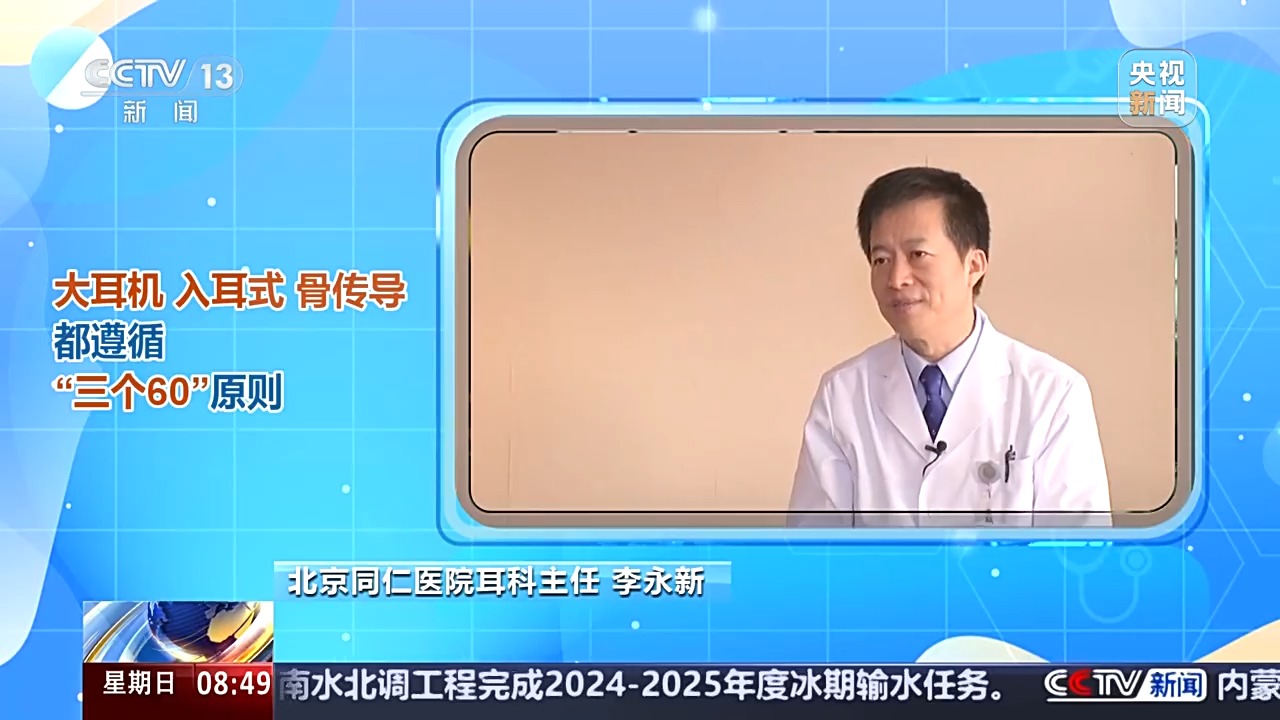 *北京同仁醫院耳科主任 李永新:*耳機它的使用是有一個原則,無論是哪種耳機,它還是遵循“三個60”的原則。