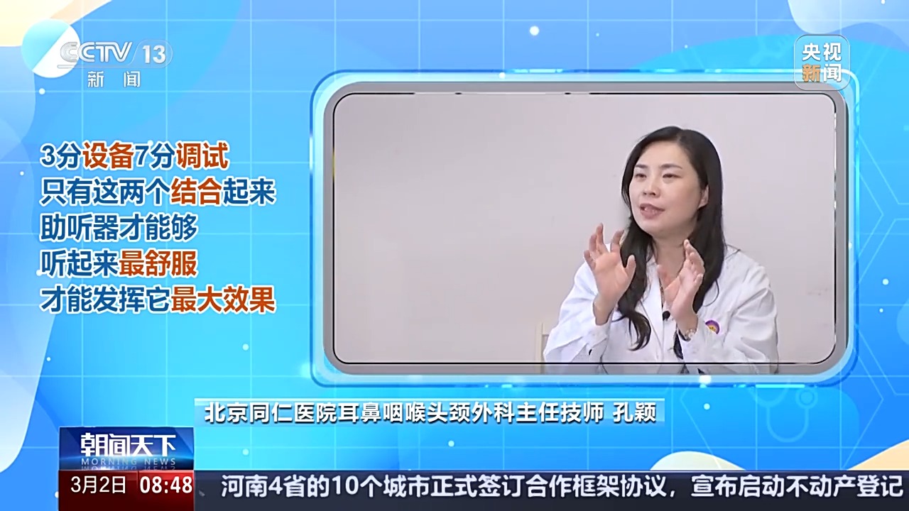 *北京同仁醫院耳鼻咽喉頭頸外科主任技師 孔穎:*我們常常跟患者講3分設備、7分調試,那麼只有這兩個結合起來,你的助聽器才能夠讓你聽起來最舒服,才能發揮它最大的效果。