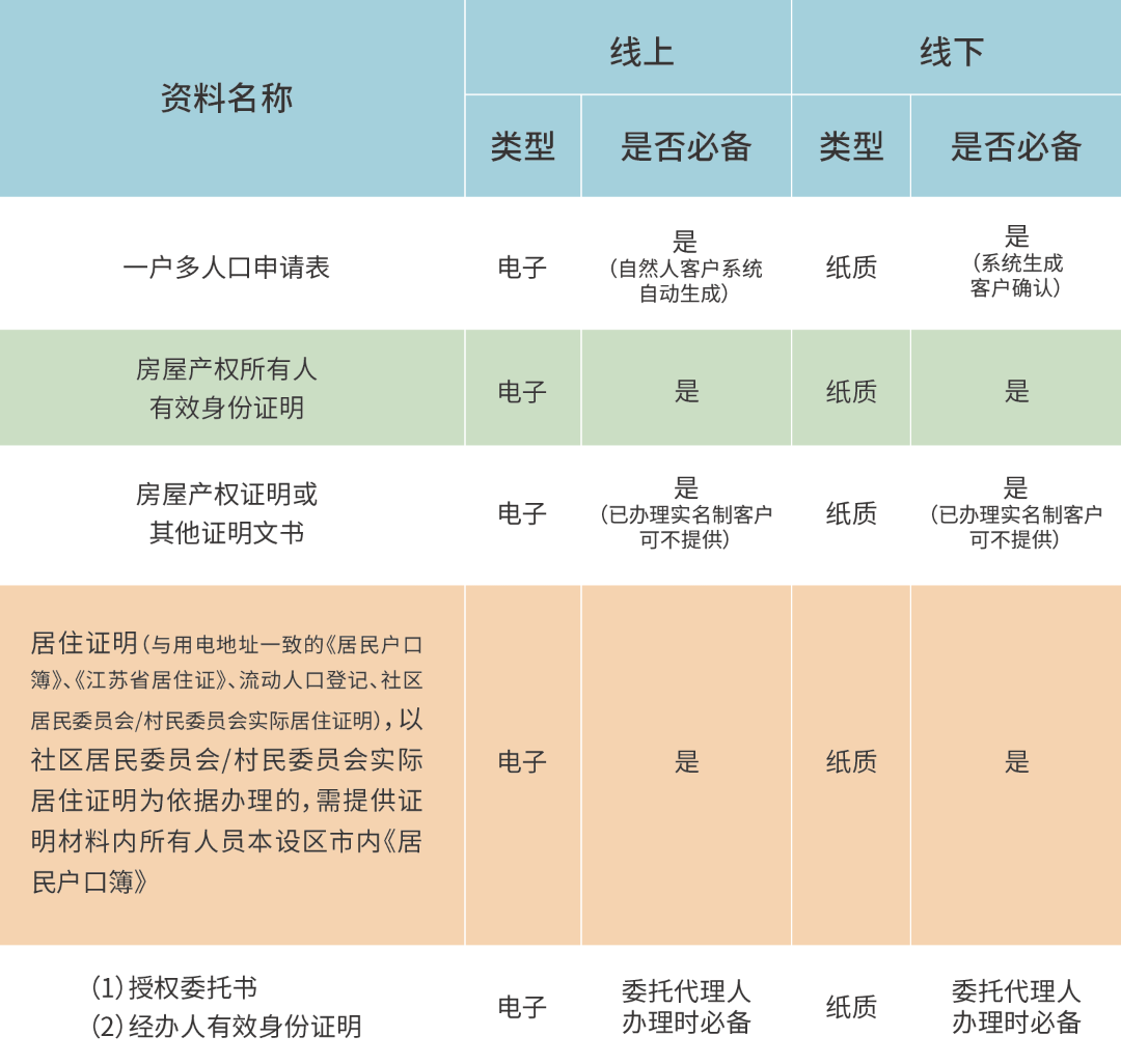 居民用户應如實申報實際用電的居住人口,當居住人口發生變化時,應及時申報調整。上述政策自“一户多人口”增加用電基數業務(下同)辦理成功的當月起執行,其中:全部居住人口以《居民户口簿》為依據辦理的,長期有效;以《江蘇省居住證》、流動人口登記和社區居民委員會、村民委員會實際居住證明為依據辦理的,有效期為一年。到期前,居民用户應及時辦理相關手續,逾期未辦理的,將停止執行。停止執行後,需重新辦理相關手續,方可自重新辦理成功的當月起再次生效,執行相應政策。