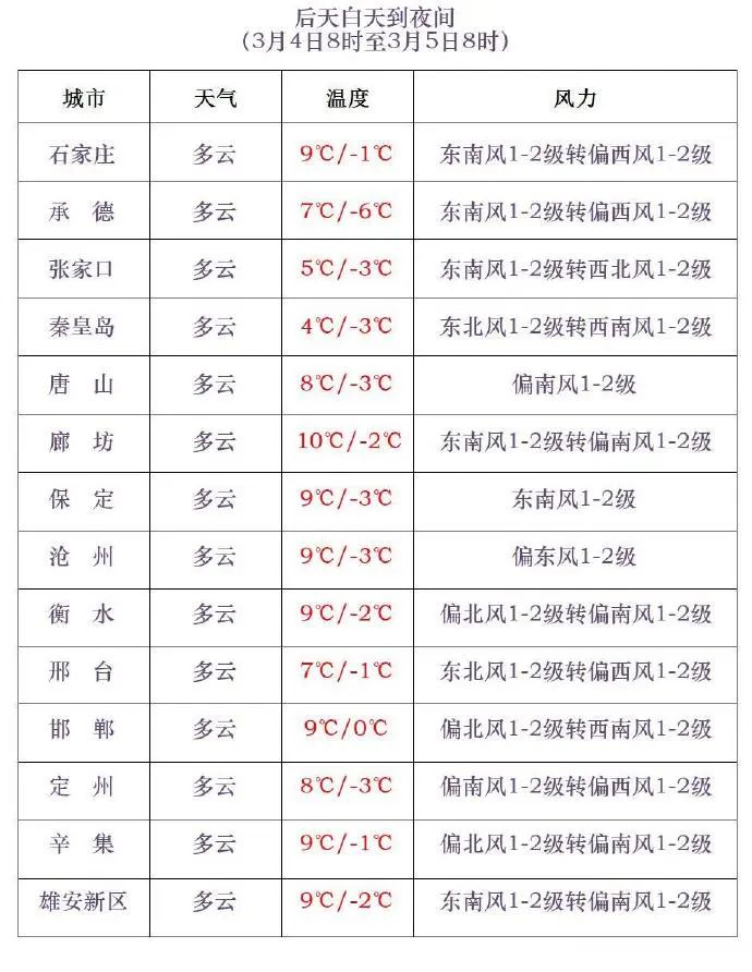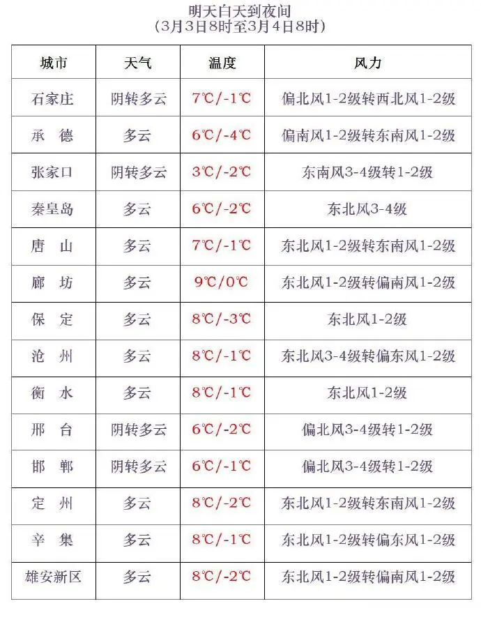 3-4日,河北南部地區最低氣温下降6~8℃,其他地區下降2~5℃。
