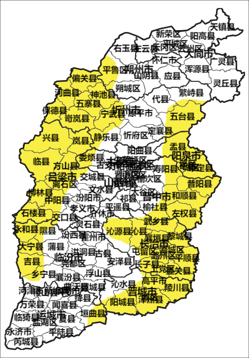 11時02分,省氣象台變更道路結冰黃色預警,預警區域為忻州東部和西部、陽泉、晉中東山、長治、晉城、運城東部、朔州西部、呂梁、太原西部、臨汾西部。預計預警區域未來24小時可能出現對交通有影響的道路結冰。交通、公安等部門要按照職責做好道路結冰應對準備工作;駕駛人員應當注意路況,安全行駛;行人外出儘量少騎自行車,注意防滑。