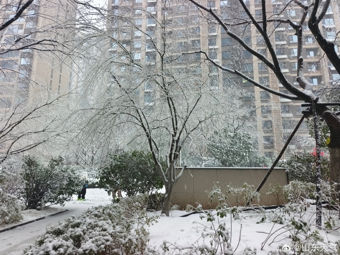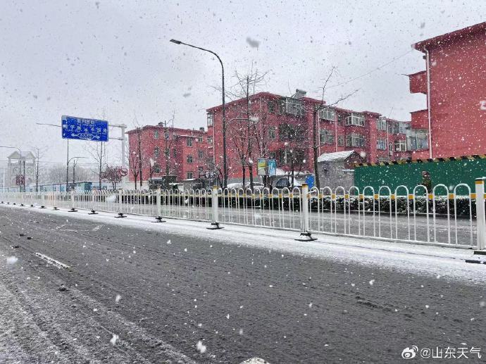 目前山東省中北部地區已出現明顯降雪和積雪,出行注意防範積雪和道路結冰!