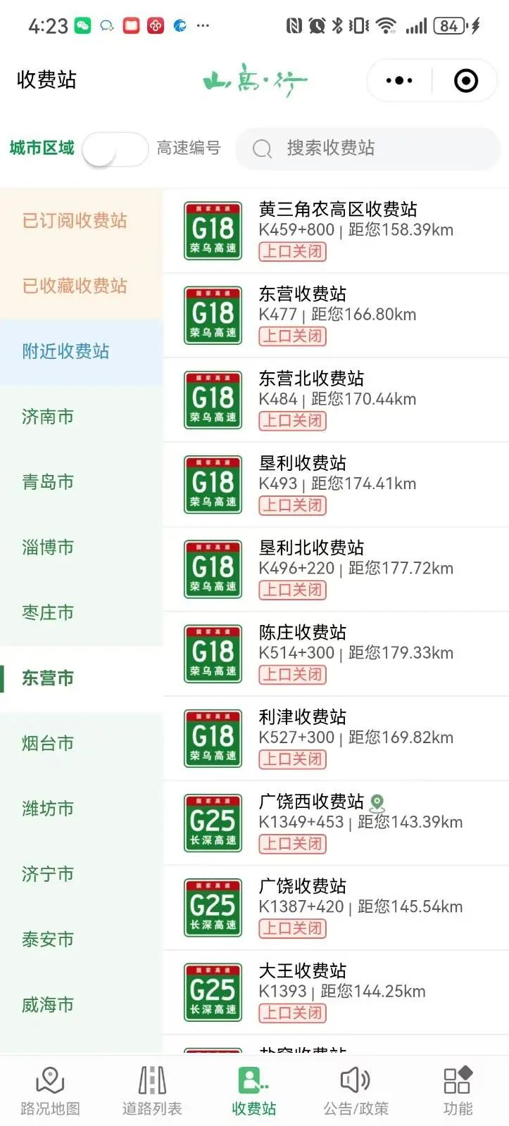 另據山東高速出行服務官方微信公眾號顯示,東營市所有高速收費站均已關閉;淄博市除淄博東、臨淄、高新區、周村等收費站外,其他高速收費站均已關閉。