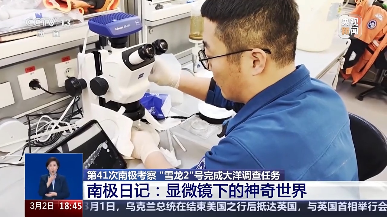 這次大洋考察的一個重點任務就是要調查該海域的生物情況。與鯨、企鵝這些肉眼可見的大型動物相比,在顯微鏡下還隱藏着一個神秘的有趣南極,跟着隨船記者的鏡頭,一起去看看。