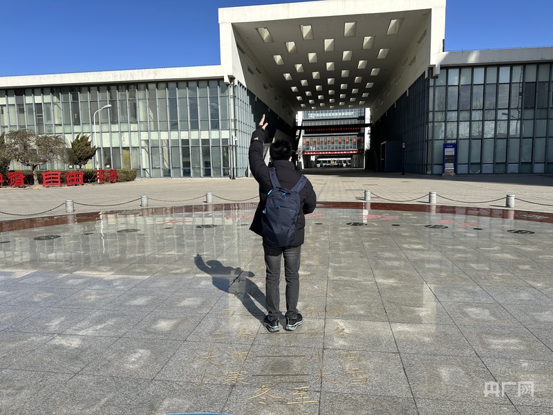 遊客體驗“太陽投影鍾”(央廣網記者 周思楊 攝)