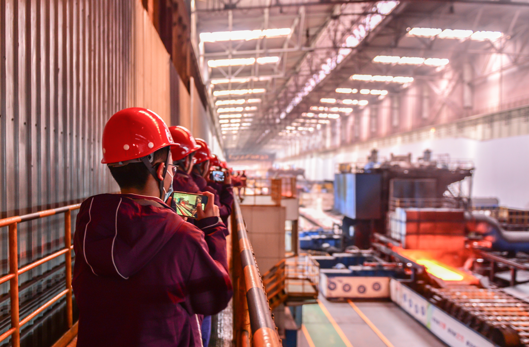 在生產車間,產線正運輸着被燒得通紅的鋼材。在參觀通廊上,學生們可以“沉浸式”瞭解鋼鐵的鑄造過程。“我們的工業遊包括生產車間、企業文化展廳以及互聯網運行中心等點位,能夠讓大家從生產、調度、管控等方面,全方位瞭解‘鋼鐵是怎樣煉成的’。”賈小慧説道。