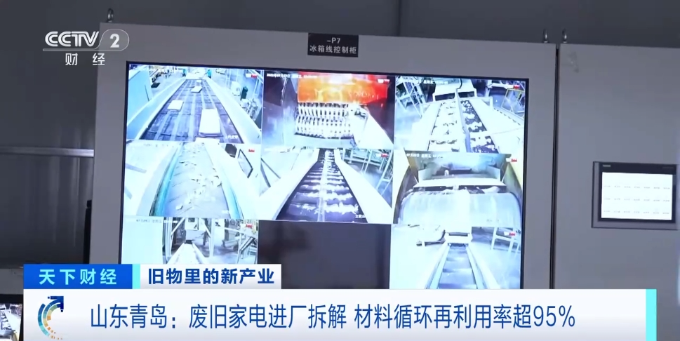 在山東青島的一家國內首家家電再循環互聯工廠,每年可實現廢舊家電拆解200萬台,循環新材料再生3萬噸。在這裏可以將廢舊家電精細化拆解到銅、鐵、鋁、塑料等材料,再循環利用率達95%以上。