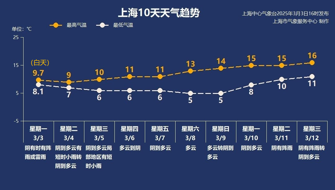 *未來兩天雨水逐漸收斂,週四起轉為多雲天氣為主。*本週工作日氣温相對穩定,週六起氣温逐步回升,屆時新一輪的入春進程有望在雙休日重啓。