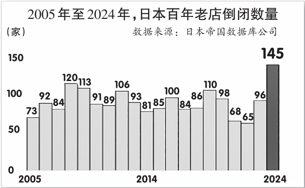 【環球時報駐日本特約記者 潘小多 環球時報記者 陳子帥】編者的話:日本帝國數據庫公司的最新調查顯示,2024年日本百年老字號企業的破產數量創下新高。2024年共有145家成立超過100年的老字號企業倒閉,數量約為上一年的1.5倍,甚至超過了2008年金融危機時期的120家。其中,零售業和製造業首當其衝,倒閉的企業數量佔總數的六成。面對市場需求萎縮、成本上升和傳承困境,不少曾經屹立百年的日本品牌難以為繼,它們將通過哪些方式擺脱困境?