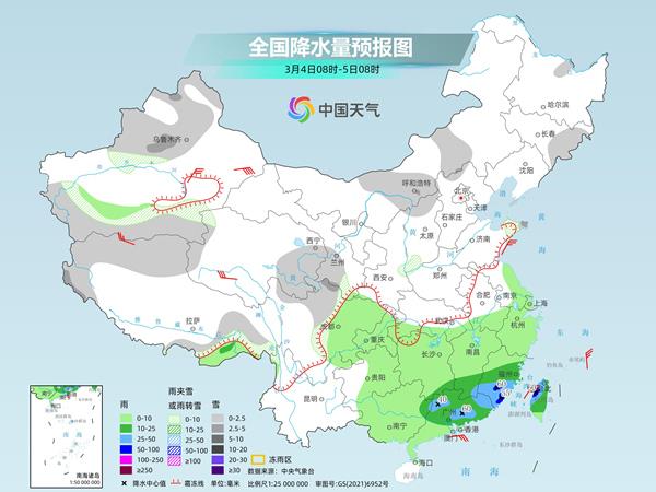今明兩天(3月4日至5日),華北、黃淮等地降雪將基本結束,南方陰雨天氣較多,部分地區有中到大雨,局地暴雨,需注意防範降水天氣對交通運輸等方面的不利影響。同時,隨着寒潮影響進入尾聲,北方大部地區氣温開始波動回升,降温將主要出現在西南、華南等地。