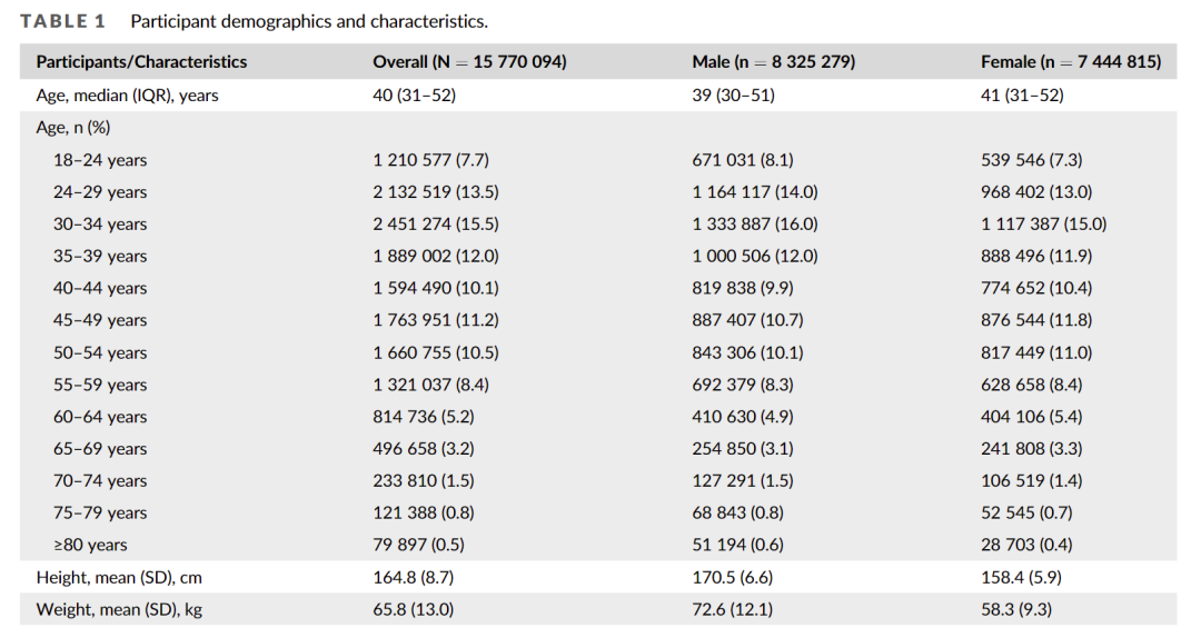 一箇中國的研究數據(下圖)顯示,超重和肥胖的總體患病率在不同年齡人羣中的趨勢會有所不同,基本上也是從24~29年齡階段開始,肥胖率增加;在中年男性(55~59歲)和老年女性中達到峯值(65~69歲)。
