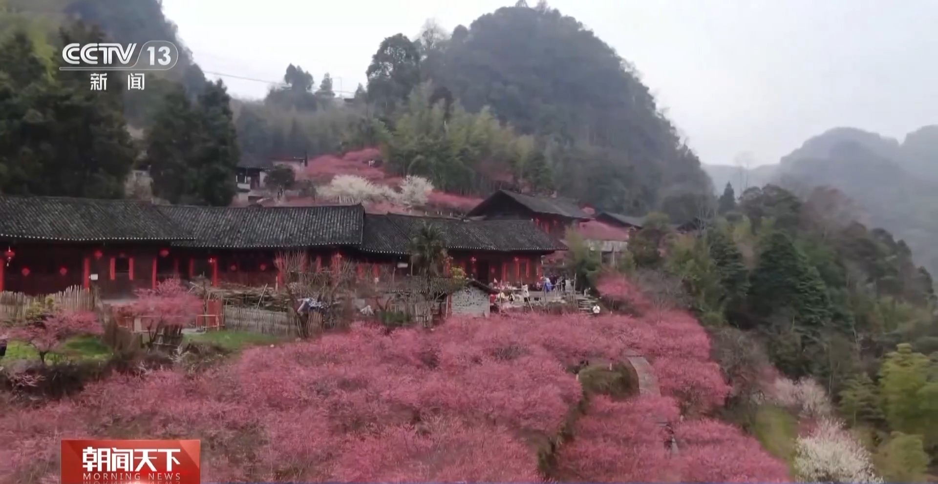 春日漸暖,在位於湖南省湘西州永順縣洞坎村陳家坡的梅花迎來盛花期,漫山遍野的梅花競相綻放,吸引了眾多遊客前來踏春賞梅,感受春日美好。
