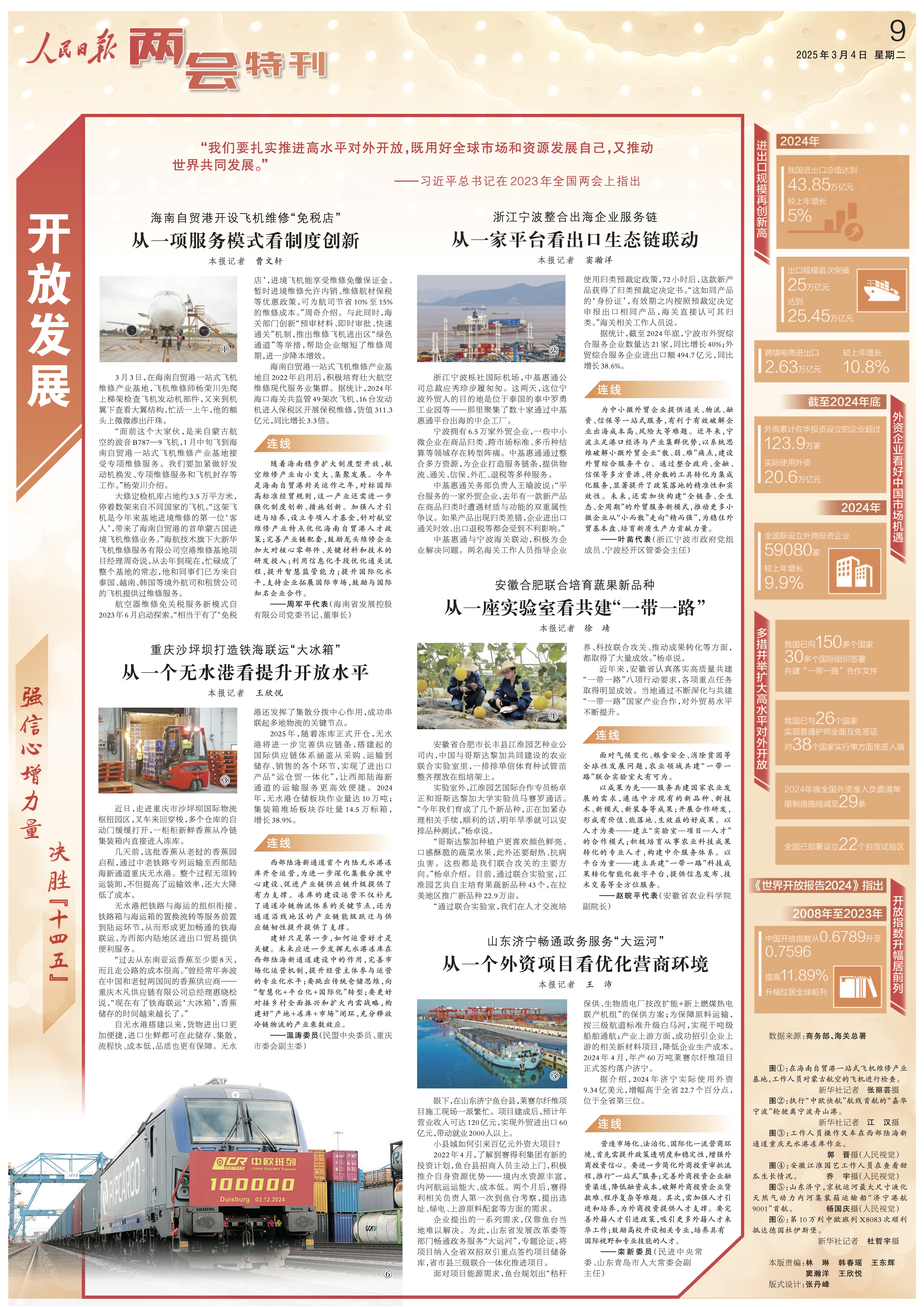 雜交水稻,在多個國家紮根,中國為80多個發展中國家培訓超過1.4萬名雜交水稻專業技術人才;光伏電站,讓肯尼亞百姓讚歎,“中國朋友將光明與希望帶到了我們這片土地”;西部陸海新通道跑出“加速度”,“重慶造”汽車出海駛向全球。合作共贏,和合共生,“賦能型大國”為世界經濟發展注入更多穩定性、確定性。