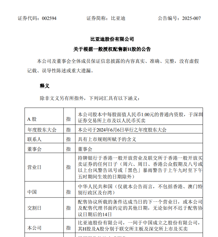 此次配售項目的成功完成,不僅為比亞迪的未來發展注入了強勁動力,也再次證明了全球投資者對中國新能源汽車產業的信心和支持。(陳十一)