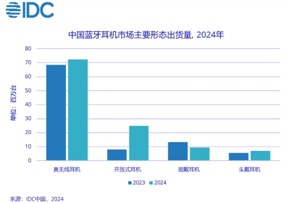 IDC:2024年中國藍牙耳機市場出貨量同比增長19.0%