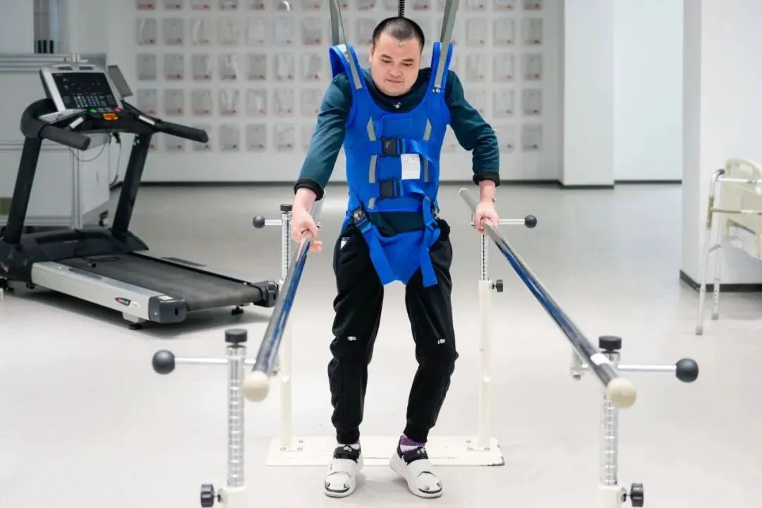 術後第14天,患者依靠自身運動意圖行走。復旦大學供圖