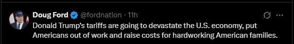 加拿大安大略省省長道格·福特在社交媒體上所發帖子的網絡截圖。