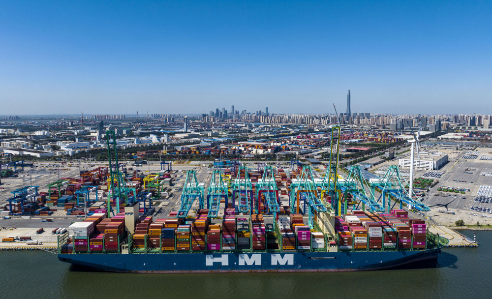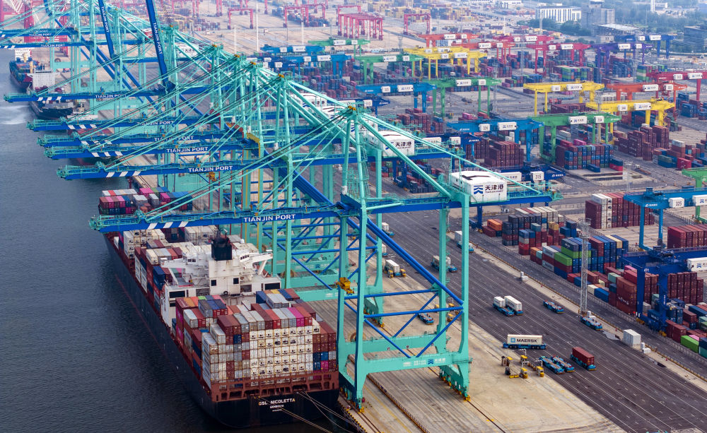 貨輪停靠在天津港集裝箱碼頭。新華社記者趙子碩 攝
