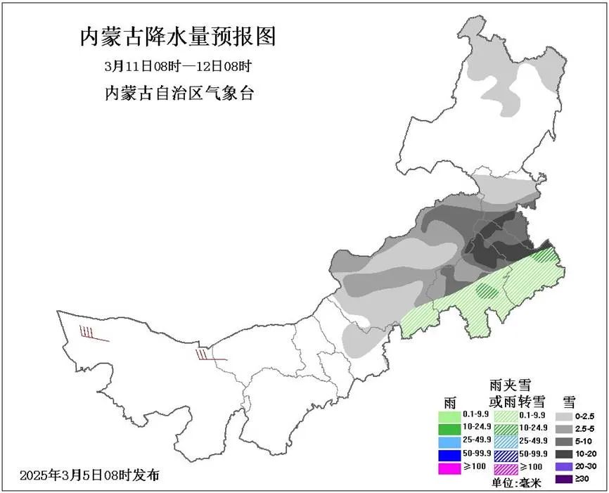 內蒙氣象台的中期預報指出,9日開始,新的大範圍雨雪到來,而且持續到12日前後。主要降水集中在錫林郭勒盟以東地區,錫林郭勒盟北部和中部、赤峯市中北部、通遼市中北部、興安盟南部有中到大雪或雨夾雪,局地有暴雪。從時間節點來説,3月第二場大範圍雨雪目前算是處於倒計時了,這將是3月以來我區出現的最強、最持久的一場雨雪過程,為什麼這麼説呢?