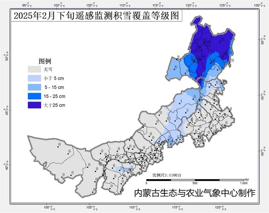 據內蒙古氣象部門最新觀測數據顯示,目前我區主要在呼倫貝爾市、興安盟北部、通遼市北部局地、赤峯市局部、錫林郭勒盟大部、鄂爾多斯市局部地區有積雪覆蓋,面積約為43.51萬平方千米,約佔全區總面積的36.78%,積雪最深處為46釐米,出現在呼倫貝爾牙克石市。