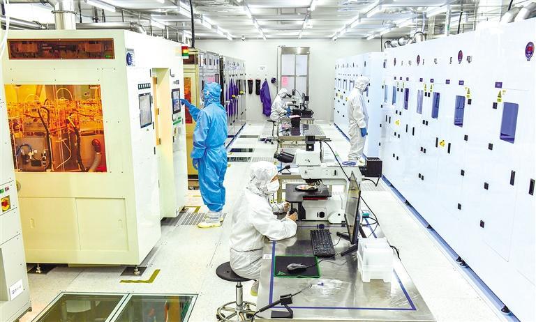 3月3日,在陝西銅川秦創原先進激光與光電集成產業創新聚集區,陝西宇騰電子科技有限公司裏一片繁忙景象,工作人員全力製備新一代半導體氮化鎵外延片。