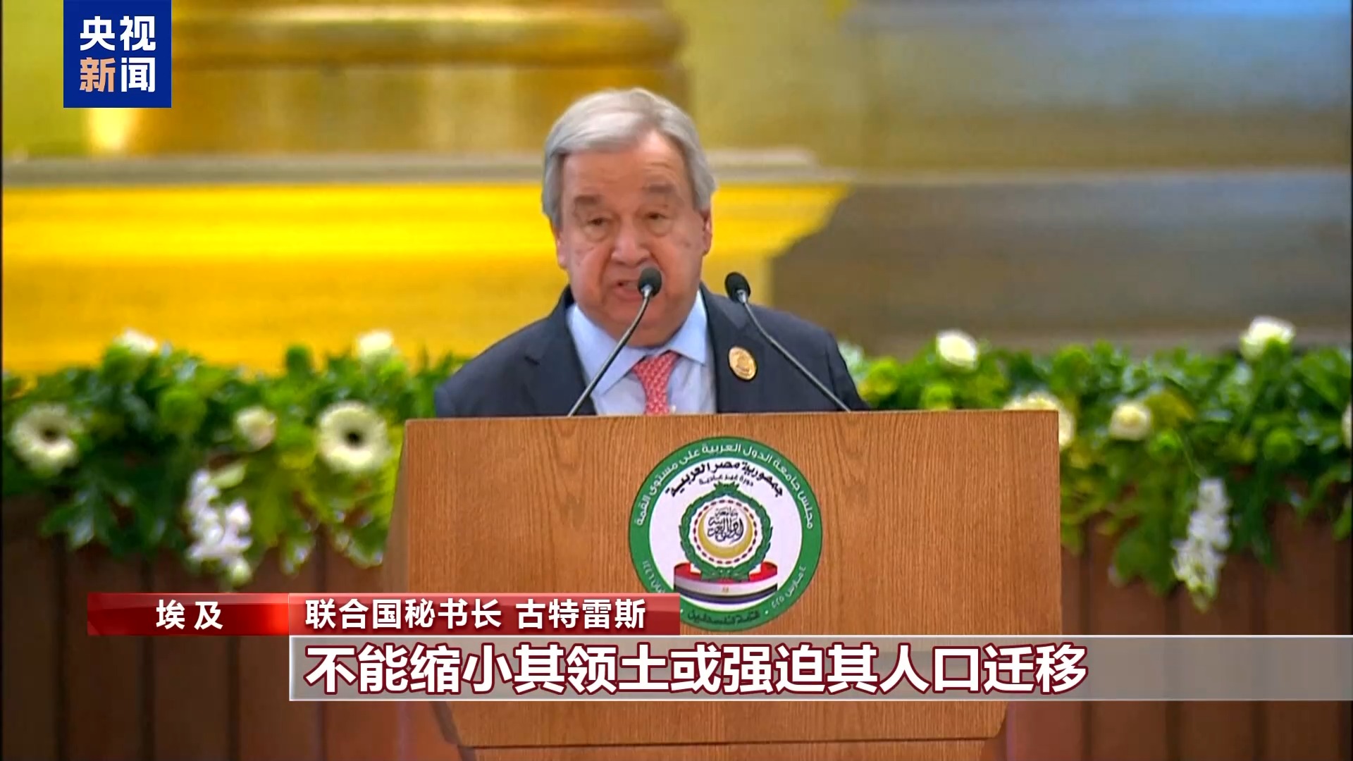 聯合國秘書長古特雷斯4日參加阿拉伯國家緊急峯會時表示,聯合國將全力配合由埃及起草的加沙重建計劃,並稱加沙地帶應仍然是巴勒斯坦的一部分。