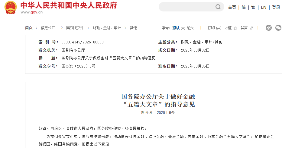 國務院力推金融“五篇大文章”,全面賦能高質量發展