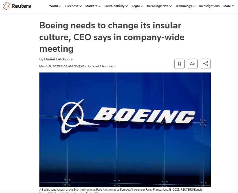 奧特伯格指出,文化變革將提升這家擁有全球超過16萬名員工的公司的士氣,並且結果將在市場上顯現出來。對於此,波音公司拒絕對他的言論發表評論。