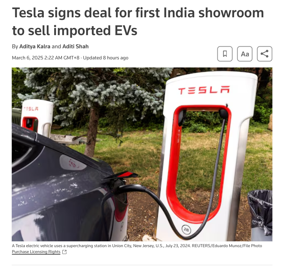 路透社此前報道稱,特斯拉已在新德里和孟買選定了兩個展廳地點。這一決定是在特斯拉首席執行官埃隆·馬斯克與印度總理納倫德拉·莫迪會晤後作出的。