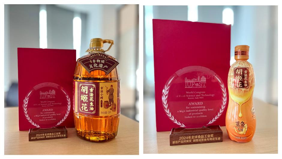 胡姬花古法小榨花生油憑藉科技創新與傳統工藝的協同發展,已經在世界舞台嶄露頭角。在世界食品科技大會中,胡姬花古法小榨花生油和胡姬花古法花生油(蒸魚專用)榮獲“2024年全球食品工業獎最佳產品風味獎”。這不僅是對其產品品質的高度認可,也為中國非遺古法技藝精髓的傳播起到了積極推動作用,讓世界領略到中國傳統榨油技藝的魅力。