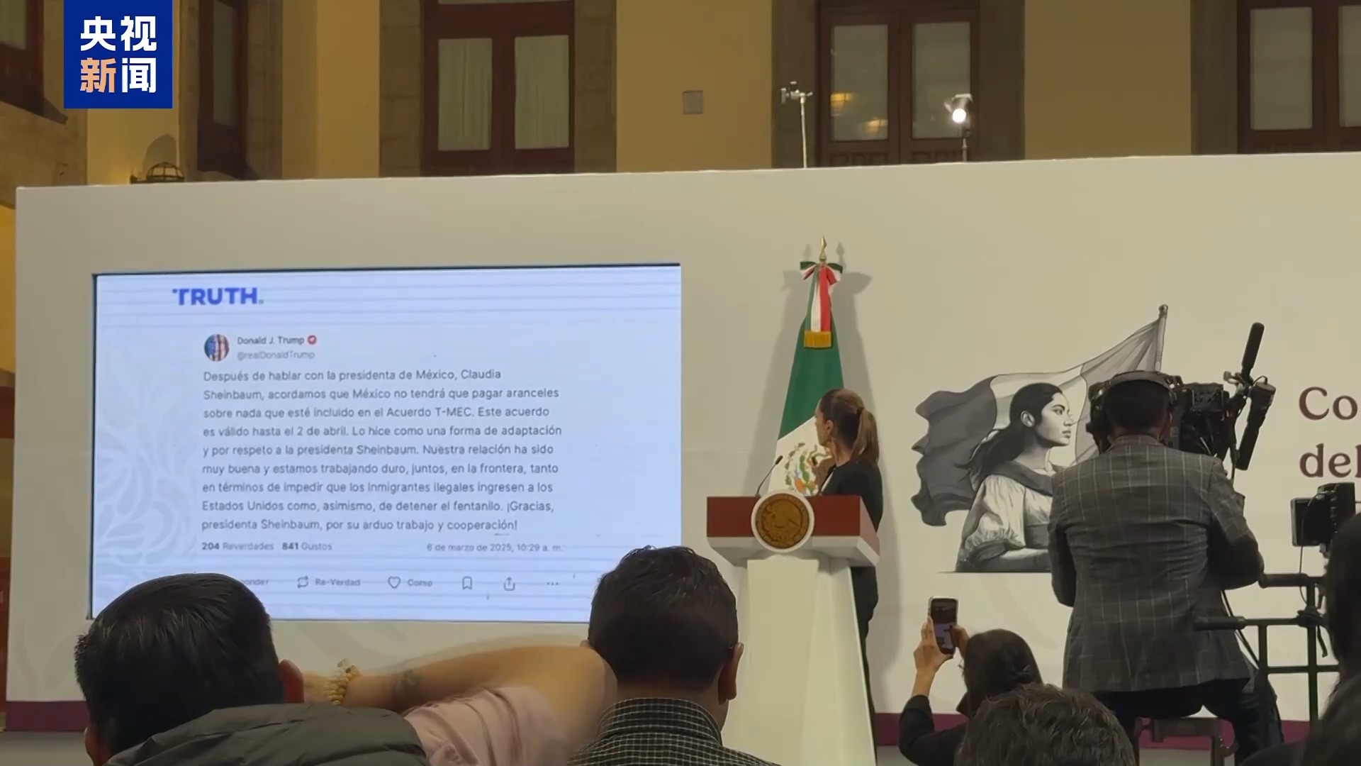 美國總統特朗普當地時間6日在社交媒體上説,對墨西哥、加拿大兩國加徵的25%關税措施將暫緩執行直至4月2日。墨西哥總統辛鮑姆當天證實,在4月2日前,墨西哥將不必為《美墨加協定》涵蓋範圍內的商品支付關税。她還表示,墨西哥將繼續就關税問題與美國進行協商。